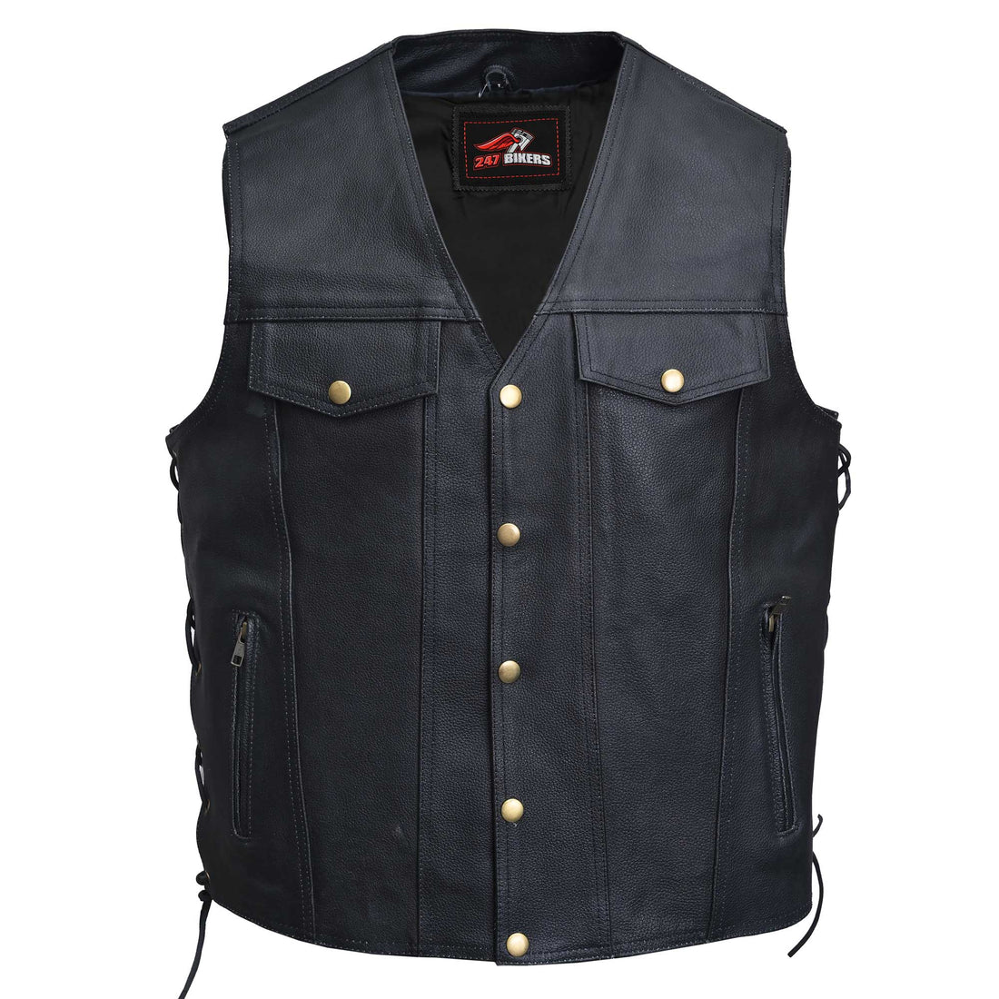 Motorcycle Club Leather Vest which is made of genuine black leather. Three pockets inside the...